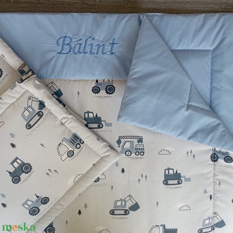 5 részes Egyedi ovis ágynemű - munkagépek mintás ovis takaró - párna - derékalj Oviszsàk szett