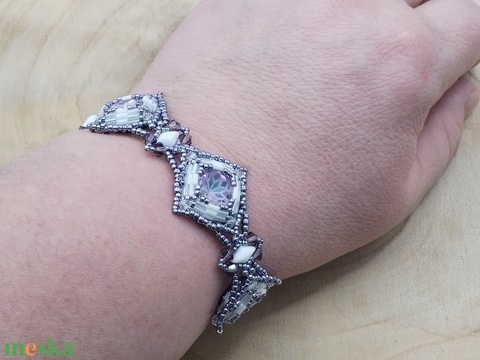 - Anyaga: chaton kristály, japán szalma gyöngy, japán kásagyöngy, bicone gyöngy, órakapocs, gemdou