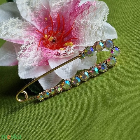 Kitűző, bross BRO293 - Strasszköves színjátszós biztosítótű 74x21mm