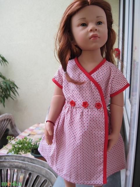 - Anyaga: pamutvászon, piros szegőpánt, piros gombok