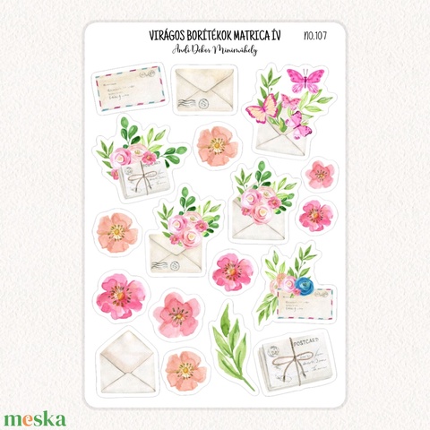 Virágos borítékok matrica ív No.107
