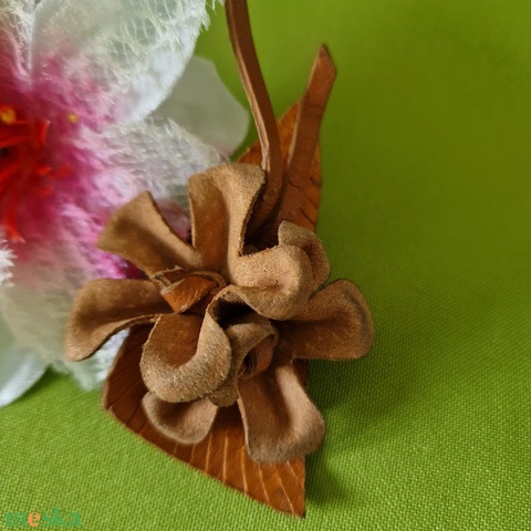 Kitűző, bross BRO230 - Bőr virágok 70x35mm 2.oszt.