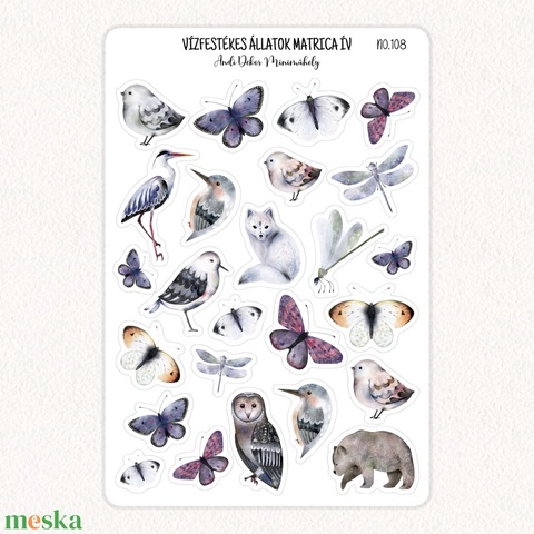 Vízfestékes állatok matrica ív No.108