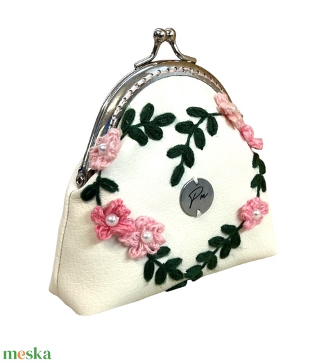Cseresznyevirágos, kézzel hímzett csatos pénztárca