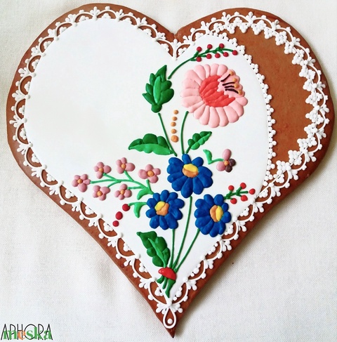 Kalocsai mintás nagy mézeskalács szív 2.