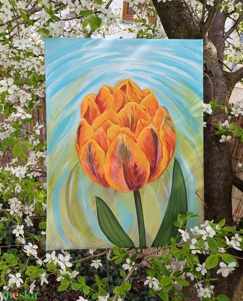 Tulipános, narancs hercegnő tulipán akril festmény, vászonkép