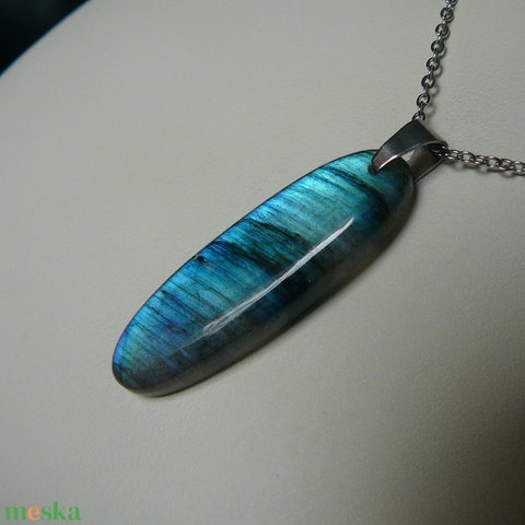 Orvosi acél szerelékre akasztottam ezt a különlegesen szép labradorit medált.