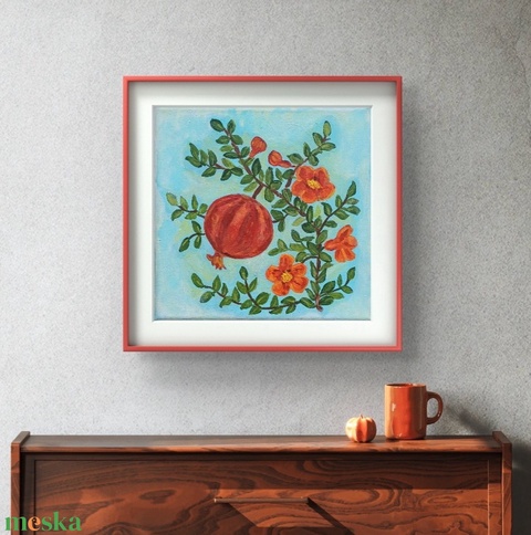 Gránátalma, mediterrán hangulatú akril festmény, vászonkép