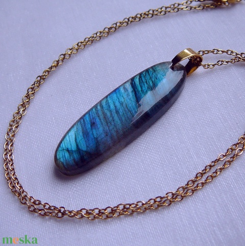 Orvosi acél szerelékre akasztottam ezt a különlegesen szép labradorit medált.