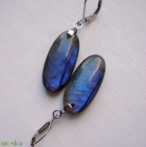 Orvosi acél szerelékre akasztottam ezt a két különlegesen szép labradorit medált.