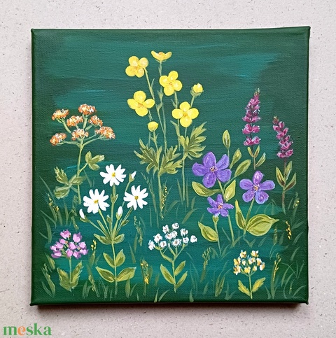 Vadvirágos, botanikai akril festmény, vászonkép