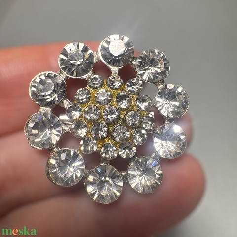 Vintage kristály virág BROSS az 1980-as évekből, strasszos kitűző, pin szövetkabátra, blúzra, blézerre retro kitűző