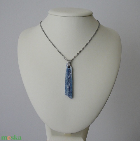 Orvosi acél szerelékre akasztottam ezt a különlegesen szép nyers kianit medált.