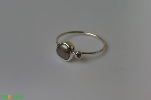 ezüstgyűrű szürke gyönggyel és ametiszttel