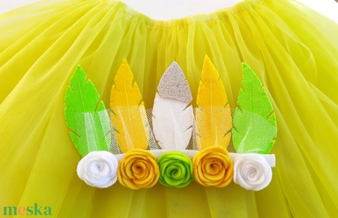 Zöld-sárga indián lány tüllszoknyával farsangi jelmez lányoknak