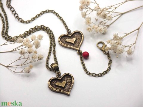 Antik bronz színű, dupla szív mintájú medálokból készült nyaklánc és karkötő szett - Ámor
