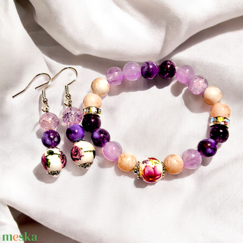 - Anyaga: akril gyöngy, fém köztes, gumis damil, nemesacél, kerámia gyöngy, rondella