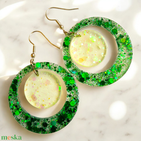 Zöld-sárga kerek lógó fülbevaló