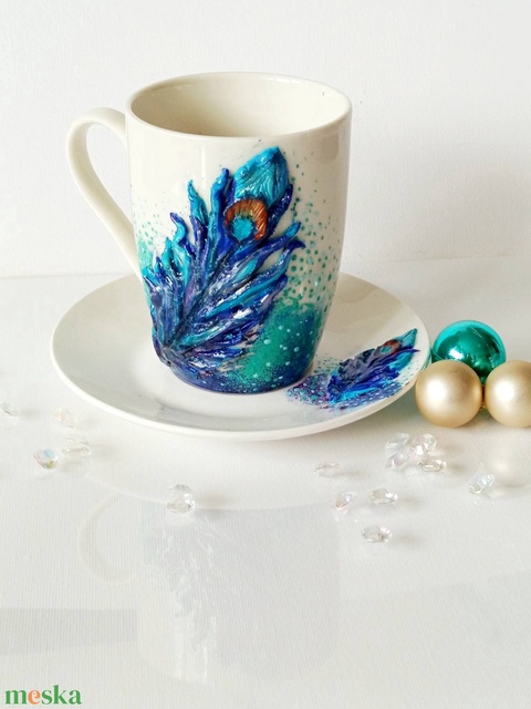 Pávatoll csésze szett