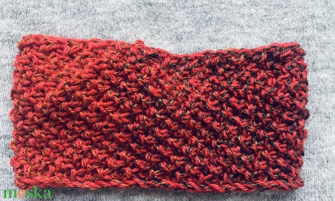 Fejpánt, fülmelegítő, homlokpánt rozsda vörös színekben pompázó gyapjú fonalból kézzel kötött fülmele