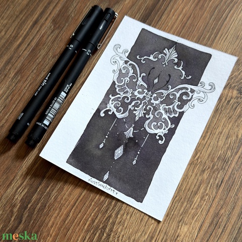 Eredeti, kézzel készült illusztráció - 2025 inktober - Pillangó ornament
