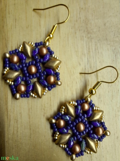 Elegáns csipkés fülbevaló (kék-arany)
