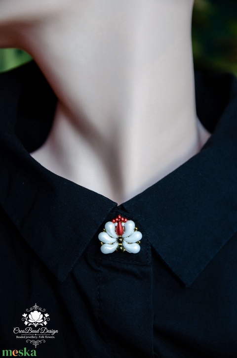Kézzel készült gyöngyös gombfedő dísz – matyó inspirációval