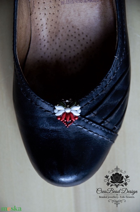 Kézzel készült gyöngyös cipőklipsz – matyó inspirációval