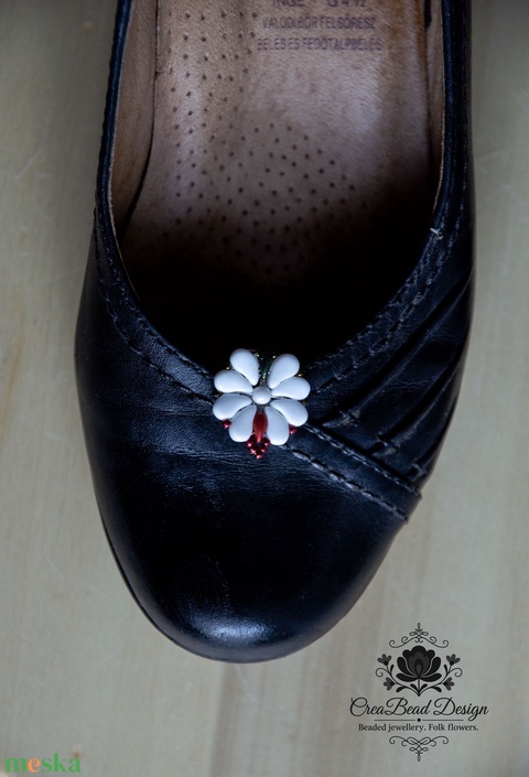 Kézzel készült gyöngyös cipőklipsz – matyó inspirációval