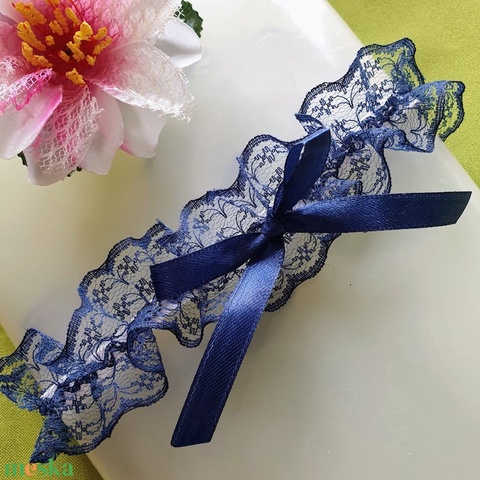 ESKÜVŐ HAK35 - 45mm-es Sötétkék színű masnis Harisnyakötő, Combcsipke, Legényfogó