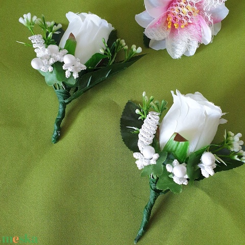 Esküvői bokréta, kitűző BOK16 - Fehér selyem rózsából