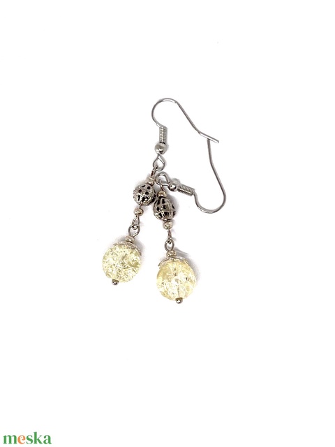 Halvány sárga kézműves roppantott üveg gyöngy lógós fülbevaló