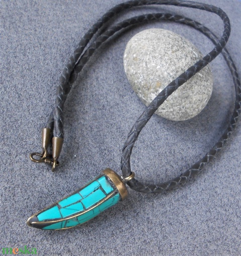 Türkiz agyar medálos totem bőrnyaklánc
