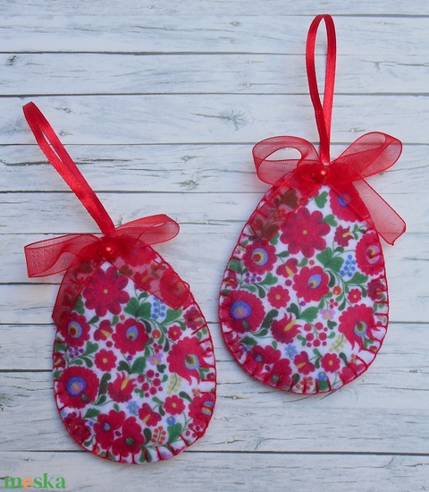 Fehér alapon apró kalocsai mintás húsvéti tojás szett (2 db)