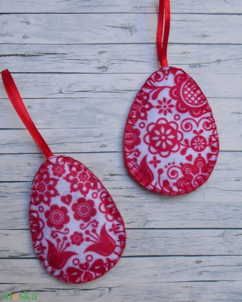 Fehér alapon piros népies virágmintás húsvéti tojás szett (2 db)