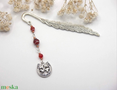 - Anyaga: könyvjelző alap, cseh üveggyöngy, patkó függő