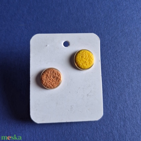 Kerek bedugós barna-sárga aszimmetrikus gyurma fülbevaló