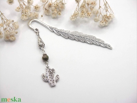 - Anyaga: ezüst színű könyvjelző alap, türkinit gyöngy, ezüst színű kaktusz függő