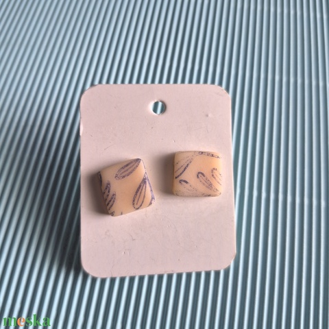 Bézs kék virágos mintás gyurma fülbevaló