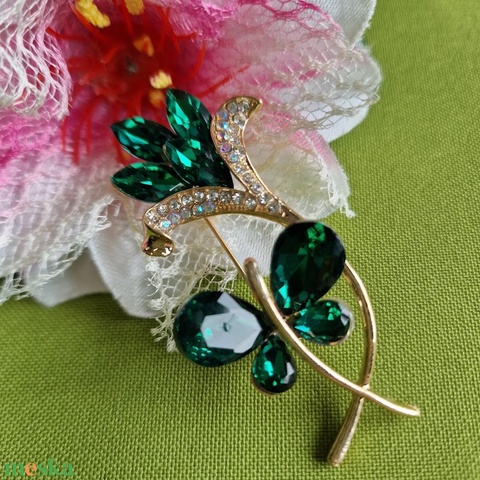 Kitűző, bross BRO292 - Strasszköves tulipánt pillangóval 30x62mm - zöld, kék
