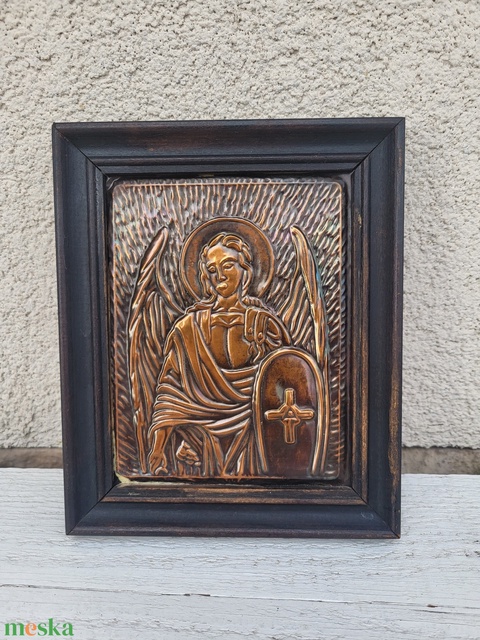 Pravoszláv / ortodox fakeretes vörösréz domborműves ikon