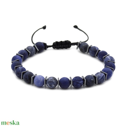 Egyedi férfi matt szodalit karkötő - állítható férfi karkötő