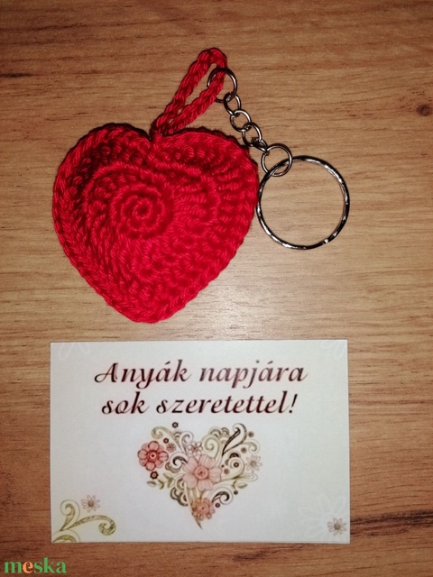Horgolt szív kulcstartó.