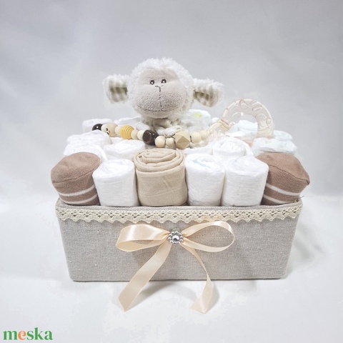 Bárány cumilánc rágcsával baba box, pelenkatorta 2-5 kg pelenkatorony, babaváró csomag, baba kelengye