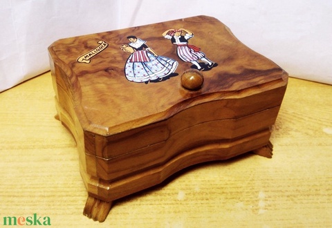 Mallorca-i emlék, tükrös ékszeres dobozka fából, táncoló párral