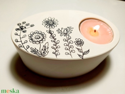 Ovális alakú mécsestartó kézzel festve