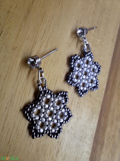 Kisvirágos rombusz fülbevaló (irizáló szürke, hematit)