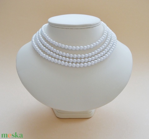 4 soros fehér kaláris - plastic gyöngyből