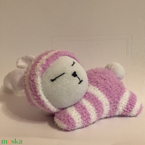 - Anyaga: pamut zokni, 100% polyester tömőanyag, szeme gyöngy, hímzett arc