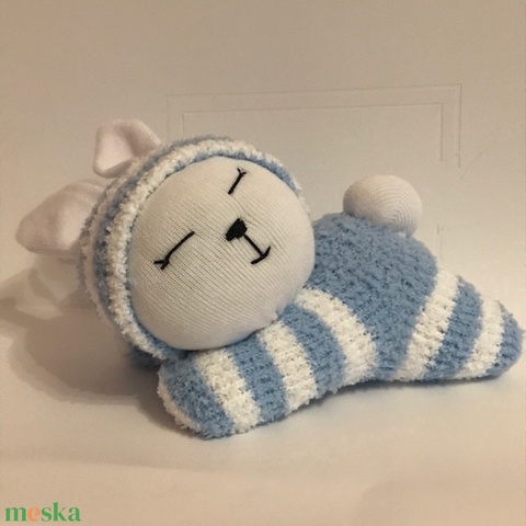 - Anyaga: pamut zokni, 100% polyester tömőanyag, szeme gyöngy, hímzett arc